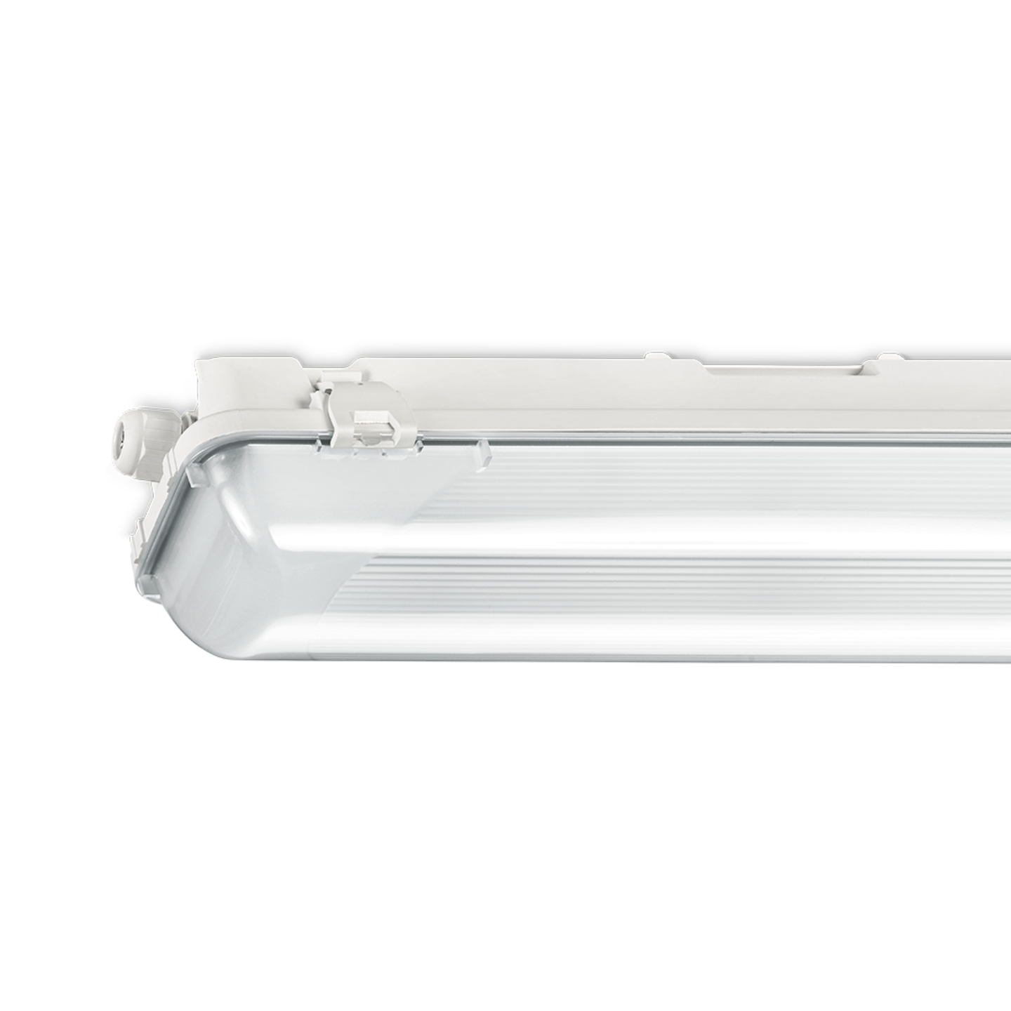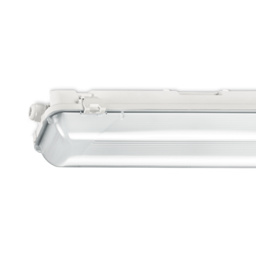 Waterdicht armatuur die buiten geplaatst mag worden, mits het onder een dichte overkapping gemonteerd wordt. Inclusief wartel en set plafondbeugels voor klikmontage. Gemaakt van polyester, versterkt met glasvezelmat. Reflector van wit gemoffeld plaatstaal. Inclusief geïntegreerde led, standaard in 4000K, en een PMMA diffuser