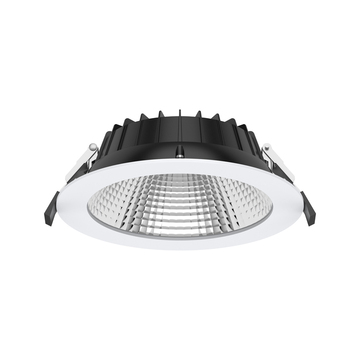 Downlight-serie van Prolumia bestaand uit inbouw- en opbouwvarianten met een IP54 waarde. Hoog lichtrendement (170 lm/W), 3-voudig instelbare kleurtemperatuur en LED-driver.