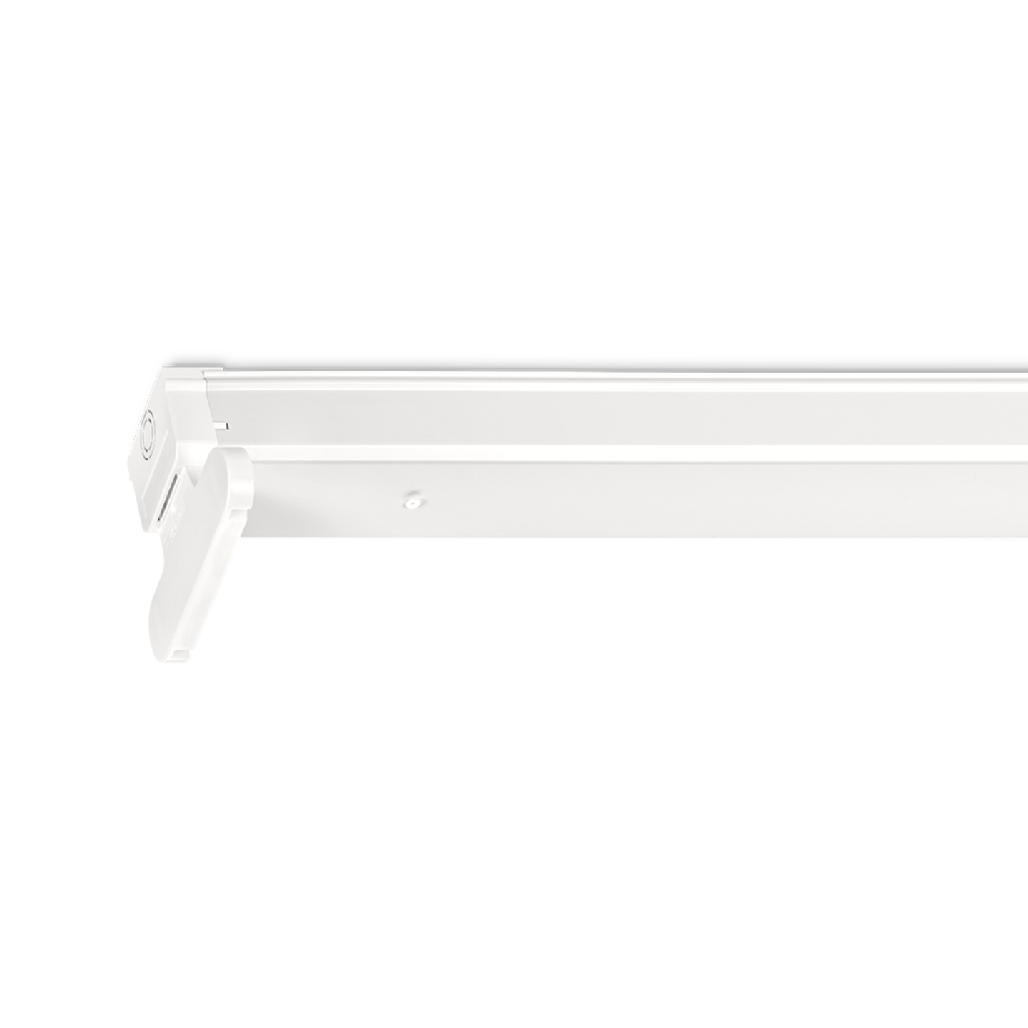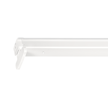 Norton montagebalk voor led tubes van wit gemoffeld plaatstaal met witte polycarbonaat eindkappen.