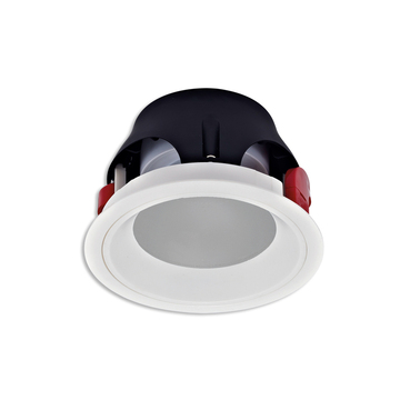 Spot/Downlight van MacBright met een kunststof ring om een aluminium behuizing van die-cast met een heldere glazen afscherming. Mat wit.