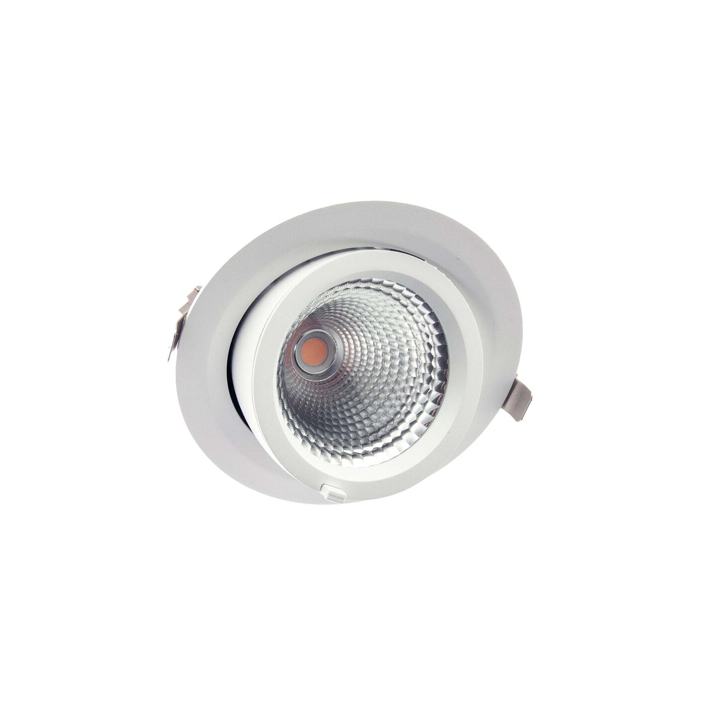 MacBright Spot/Downlight met een wit gepodercoate aluminium die-cast behuizing. Wordt geplaatst door middel van klapveren en is draai- en kantelbaar.