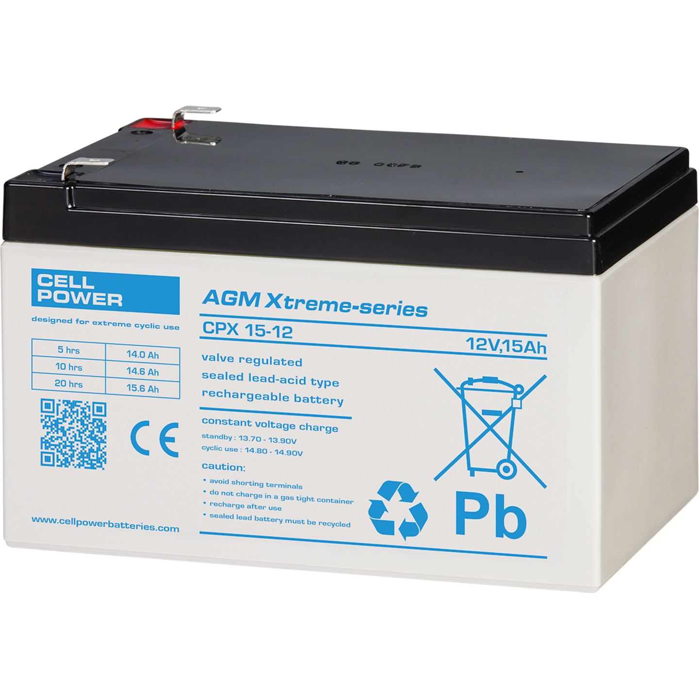 De Cellpower CPX serie is speciaal ontwikkeld voor extreem cyclisch gebruik. Accu’s uit de CPX serie halen in vergelijking tot andere accu’s met dezelfde behuizing 20% tot 30% meer cycli (mobiliteitstoepassingen).