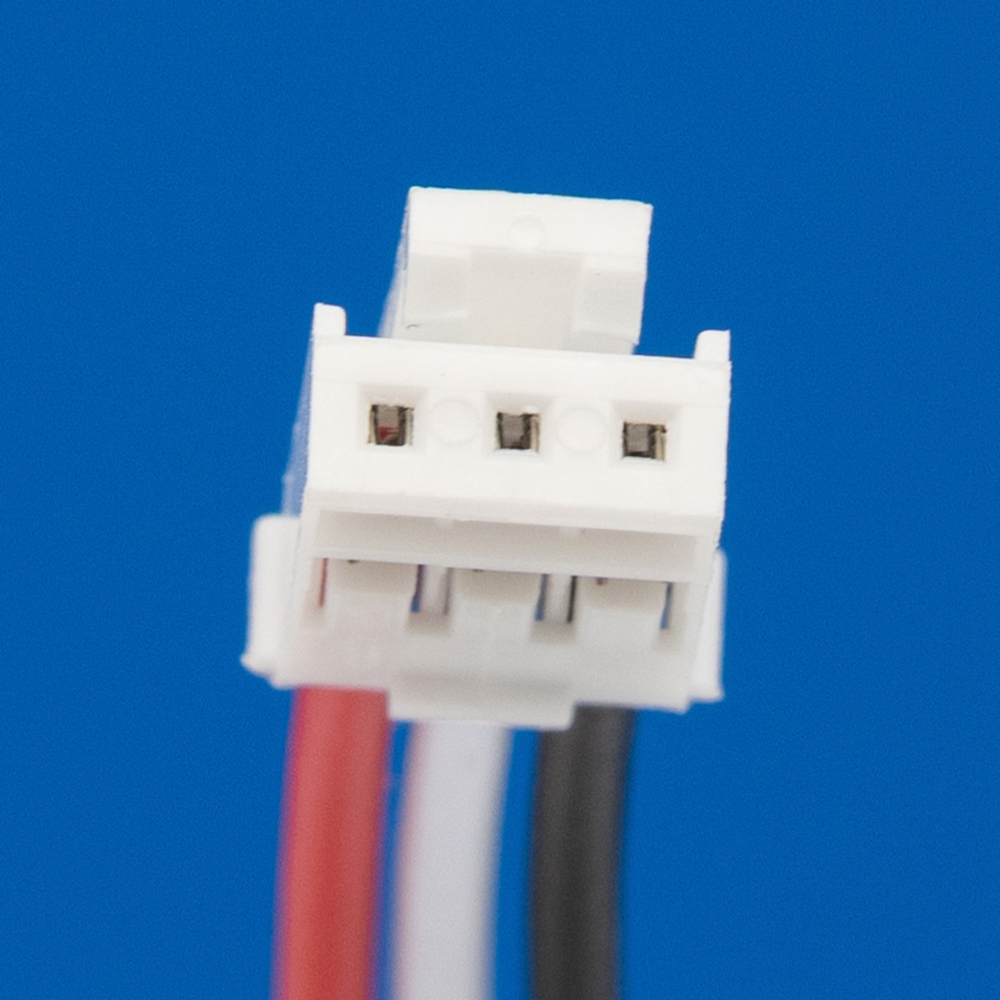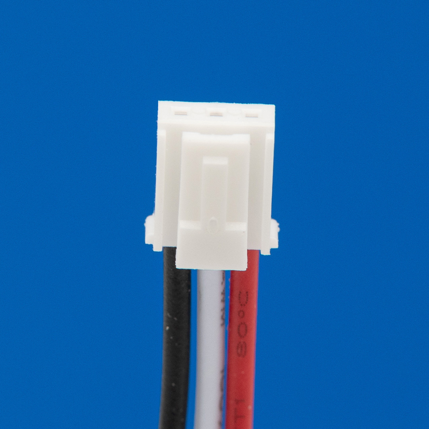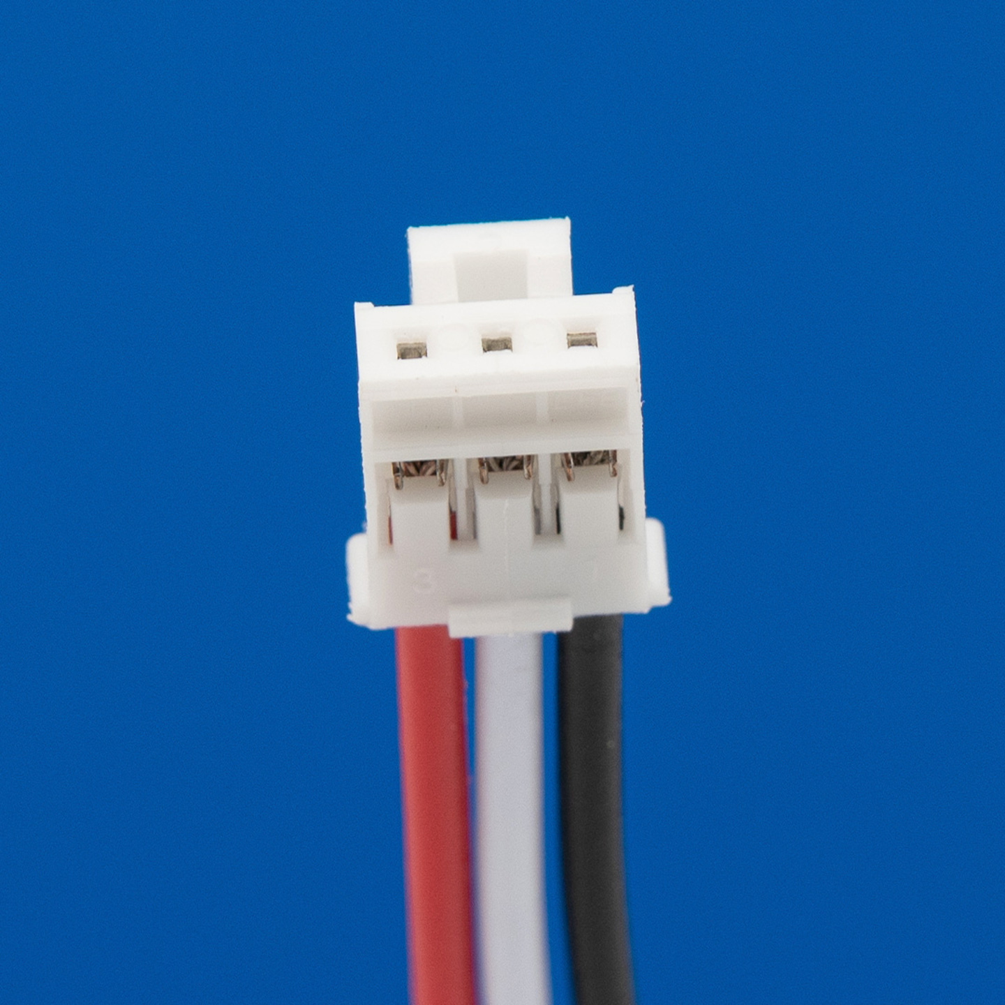 Connector 3 draden rood links / wit midden / zwart rechts (8 cm) voor lithium accu's.