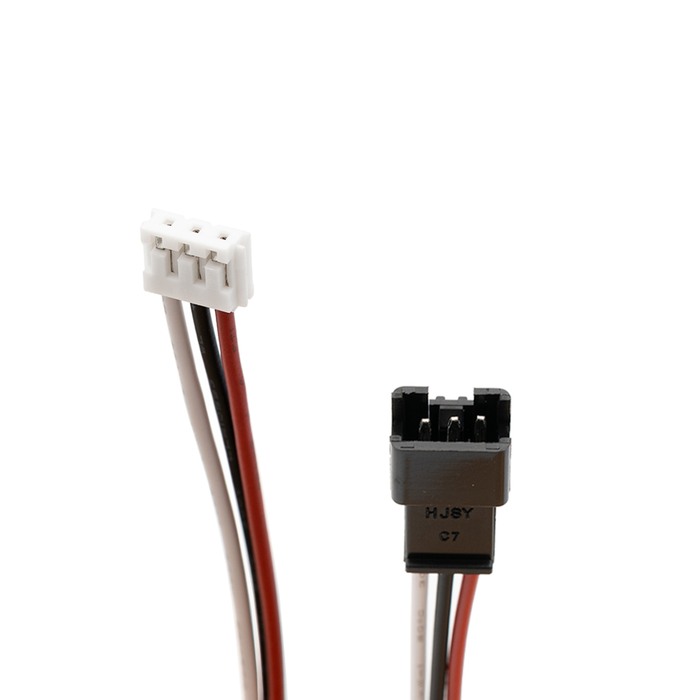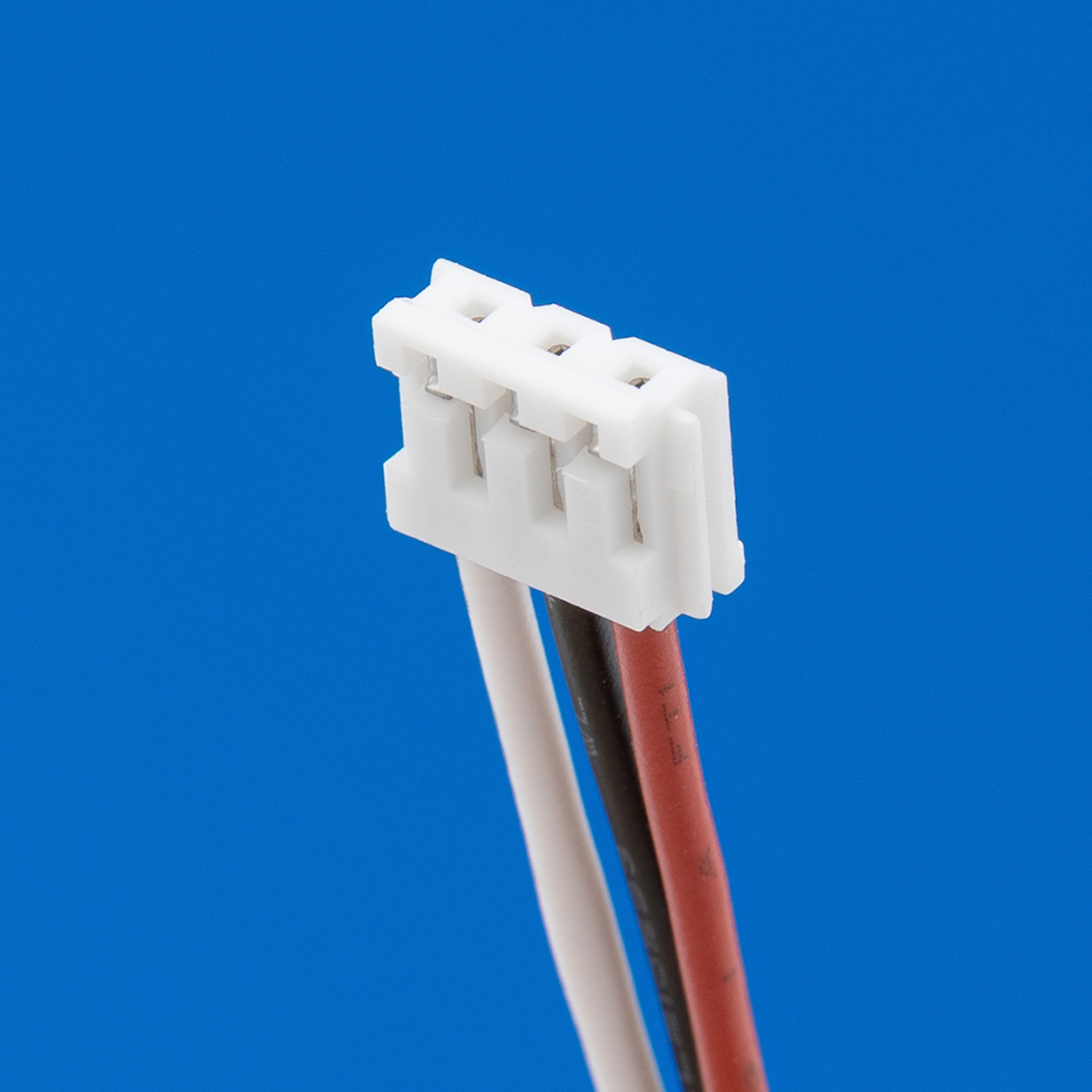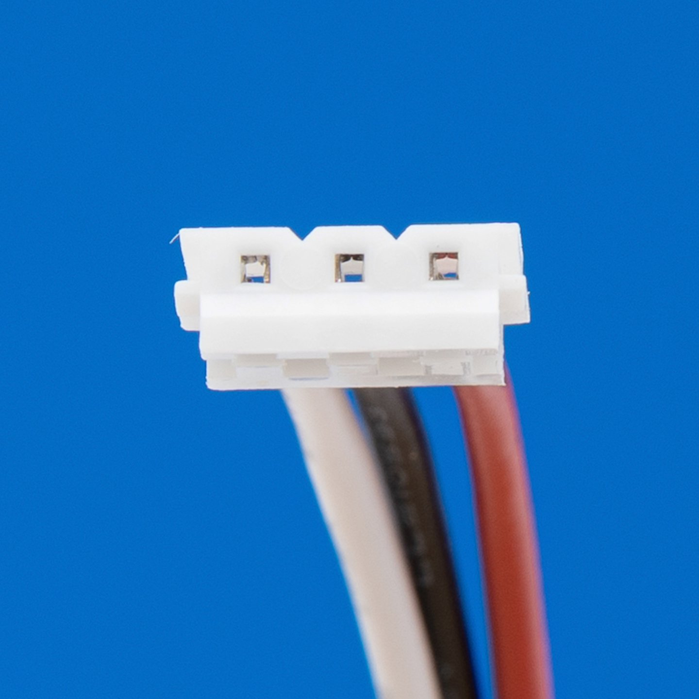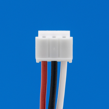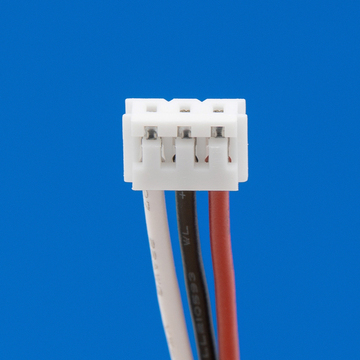 Connector met 3 draden rood links / midden zwart / wit rechts (18 cm) voor lithium accu's.