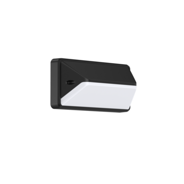 Moderne zwarte wandarmatuur van Emilux met zwart trapezium en slagvaste lampenkap. Het licht wordt gelijkmatig verdeeld en het armatuur verhoogt hiermee het comfortabel gevoel van veiligheid.De armaturen uit de PORTO serie zijn zeer geschikt voor woningbouw in gangen, galerijen en voor verlichting van voor- en achterdeuren.